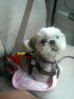 ベラさん、シートベルトはお気に入りみたいで、自分から頭を持ってきてくれます。